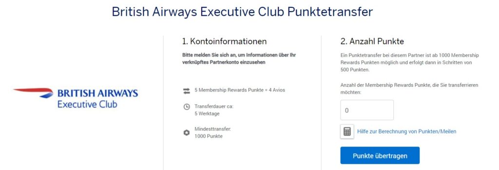 Auch Eure Willkommenspunkte aus den unterschiedlichen Amex Kreditkartenangeboten könnt Ihr über die Transferpartner-Seite von American Express in Avios eintauschen.