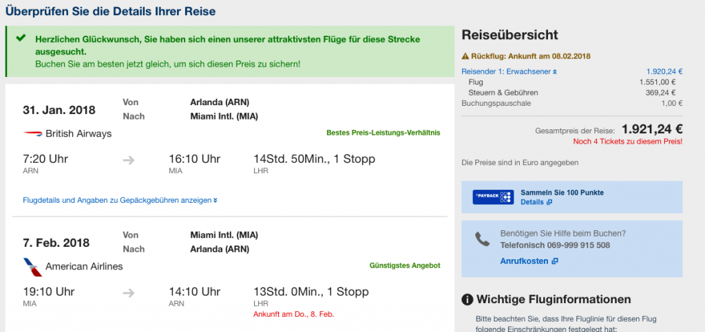 Die hier gezeigten Preise habe ich über Expedia.de ermittelt. Das Angenehme hier ist, dass Euch die Preise in Euro angezeigt werden und nicht in SEK. Über momondo.de findet Ihr noch eine ganze Reihe weiterer Anbieter. Natürlich könnt Ihr auch über die Airline selbst oder ein Reisebüro buchen!