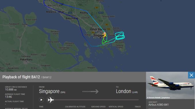 British Airways-Passagiere machen irren Rundflug: 43 mal kreist ein Airbus A380 vor Singapur | Frankfurtflyer Kommentar