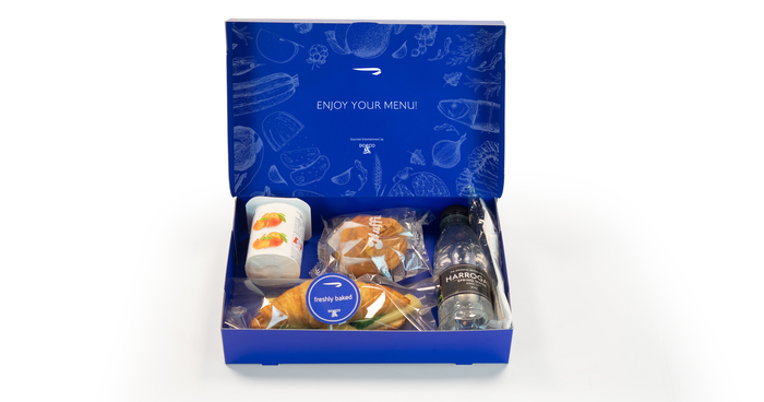 In der Business Class auf Langstrecken, welche British Airways Club World nennt, wird man ab Dienstag als Hauptmahlzeit eine kalte Snack Box, bestehend aus einem großen Salat, einem Sandwich, sowie einem Dessert besteht, gereicht.