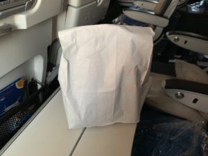 Allerdings wird man auf Langstrecken wohl auch wieder einen zweiten Service in den günstigeren Klassen anbieten und hier wird man eine ebenfalls kleine und überschaubare Snack Box reichen. Hier eine Frühstücks Box: