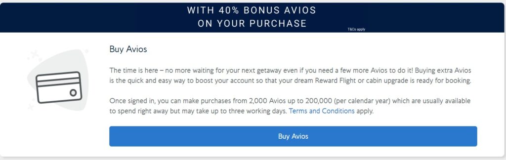 • Bonus Avios zählen nicht zum jährlichen 200.000 Avios Kauflimit