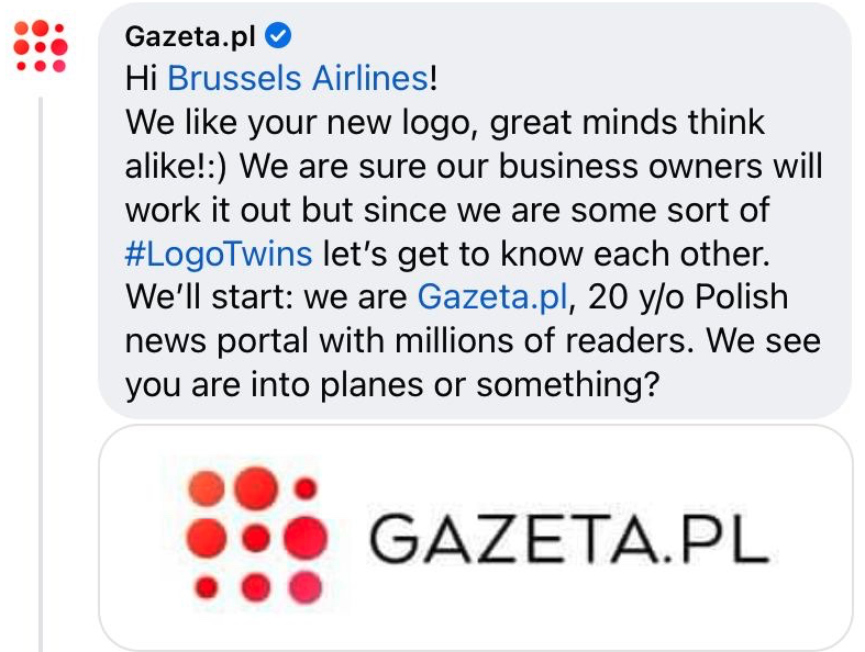Aber auch die polnische News Portal Gazeta.pl hat angemerkt, dass das Logo des Medienunternehmens und der Airline nun sehr ähnlich aussehen würden. Dabei sind sie auch wirklich sehr ähnlich, aber wirklich identisch sind sie nicht. Am Ende des Tages sind es einfach neun rote Punkte.