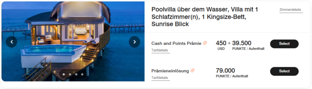Vergesst nicht, dass bei der Buchung von fünf aufeinanderfolgenden Nächten die fünfte Nacht nicht berechnet wird. Ein kleiner Wermutstropfen ergibt sich bei der Buchung von Punktenächten: Der niedrige Wert von 79.000 Punkten gilt nur in der Regenzeit. In der Hochsaison kann das Resort auch über 100.000 Punkte für eine der Villen berechnen.