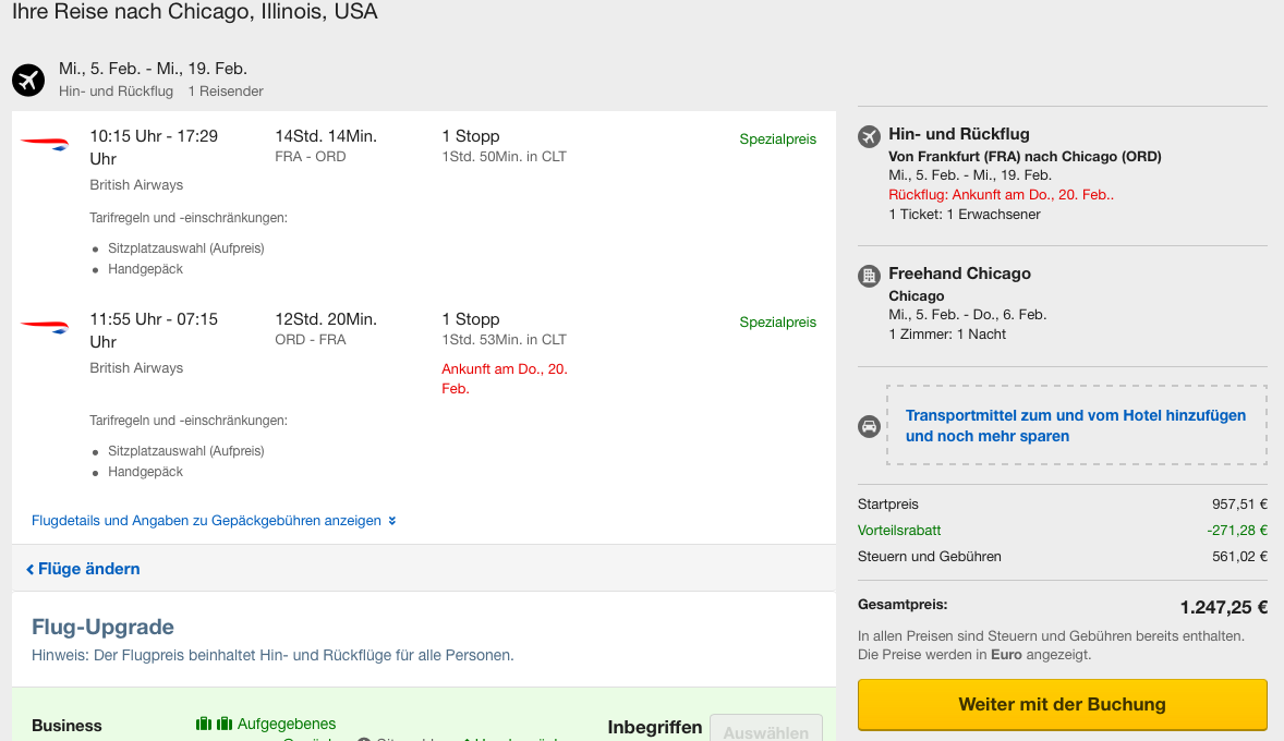 Der Buchungsprozess über Expedia.de ist zwar etwas umständlicher als bei einer normalen Flugbuchung, allerdings ist es nicht wirklich schwer diesen Tarif zu buchen.