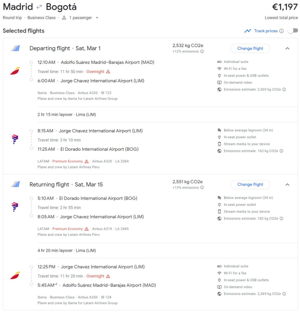 Business Class Deal nach Kolumbien: Hin- und Rückflug mit Iberia und LATAM ab 1200 Euro | Tarifdetails