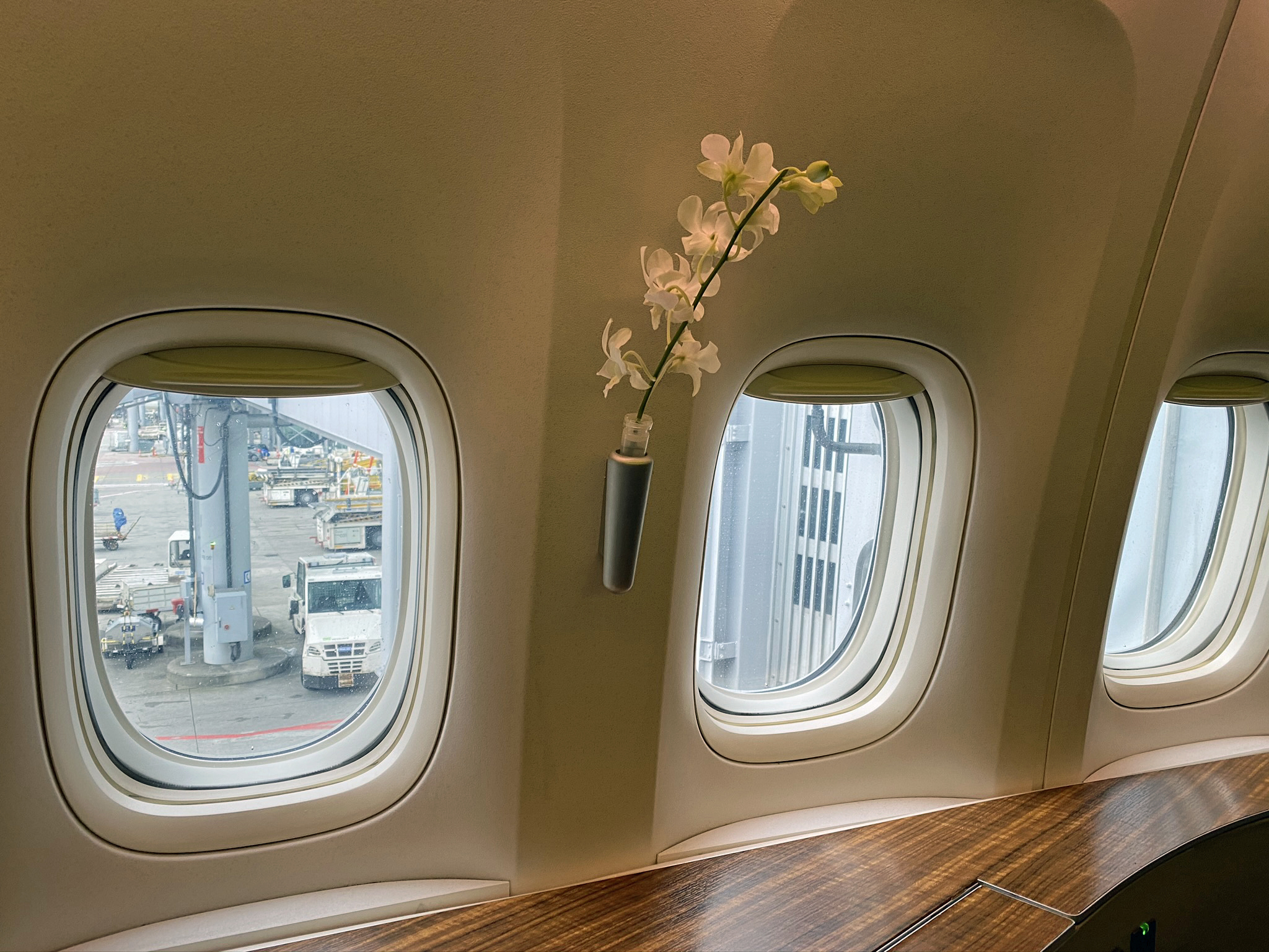 Ein Autor des Blogs hat sich über die Prämienverfügbarkeit zwischen HND und HKG sehr gefreut und den Trip mit Meilen gebucht. Nach ersten chaotischen Erfahrungen am Check-in sollte es losgehen, die Passagiere nahmen Platz und freuten sich in der Cathay First Class über die warme Begrüßung, die schöne Kabine, einer handgeschriebenen Karte und einem Glas Champagner.