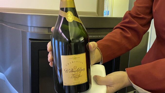 Das Thema Champagner hatten wir in diesem Jahr bereits mehrfach angeschnitten, so gab es bei Swiss über Wochen Lieferprobleme, manche Airlines haben diesen auf Europa-Strecken inzwischen ganz abgeschafft. In der First Class gehören Dinge wie ein guter Champagner zur Pflicht- ganz unabhängig davon wie lange die Flugzeit ist.