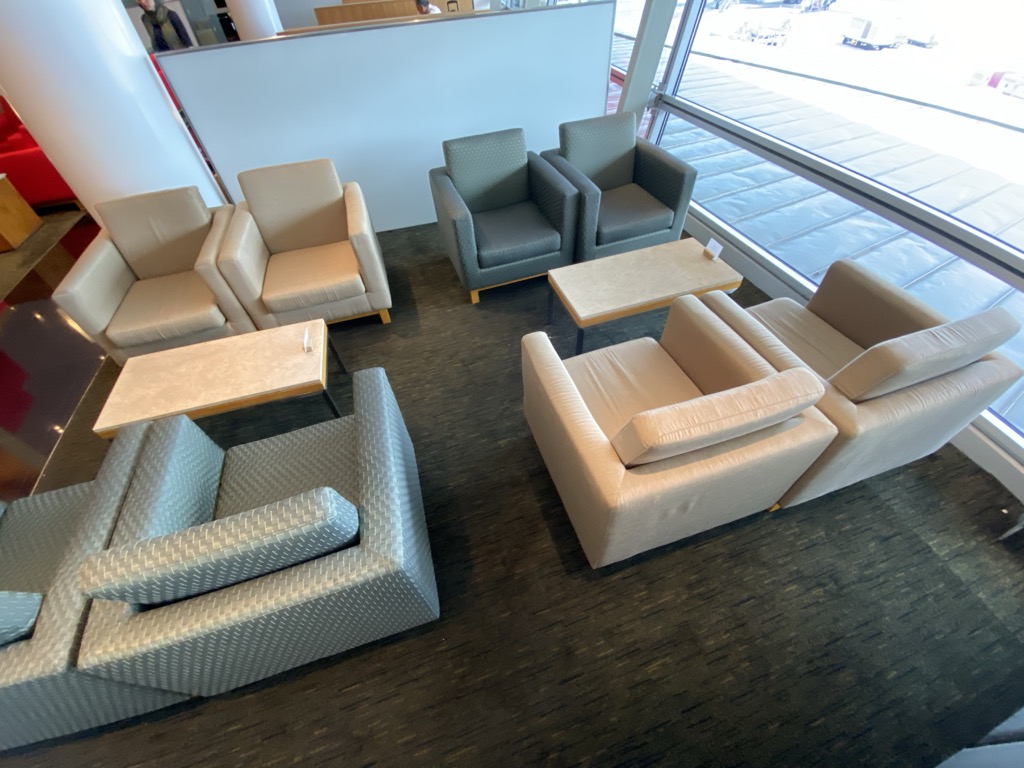 Die Cathay Pacific Lounge war im Grunde ein einzelner Raum, der in verschiedene Bereiche unterteilt war. Verschiedene Sitzmöbel, welche in Gruppen standen, dominierten die Lounge.