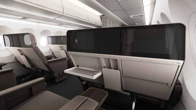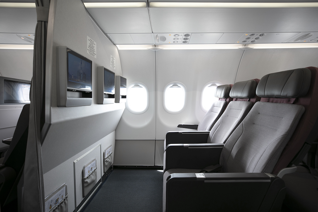 Die Sitze lassen sich nicht in ein flaches Bett stellen, die Neigung sowie die Sitzbreite kann dennoch ein komfortables Flugerlebnis ermöglichen. Das Entertainment spielt natürlich auch vorne im Flugzeug eine große Rolle, dank der 15,6-Zoll-4K-Ultra-HD Monitore kann man das IFE voll genießen. Eine Bluetooth-Kopplung für eigene Kopfhörer ist möglich, der Router von Intelsat versorgt die Passagiere mit einem WiFi Zugang.