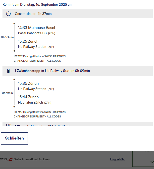 Dass nun sowas mal übersehen werden kann, insbesondere von Swiss, meine Güte, kann passieren. Ausserdem fahren die Flugzüge von Basel SBB nach Zürich Oerlikon, was drei Kilometer vor dem Flughafen liegt.