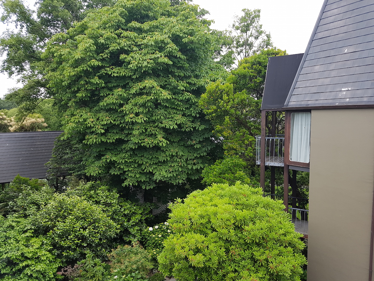 Unser Zimmer hat sich im dritten Stock befunden und wir hatten einen Blick in den Innehof. Das klingt zunächst einmal wenig spannend, allerdings muss man sagen, dass die Gärten und Innenhöfe im Chateau on the Park extrem schön gestaltet sind. Man hat sogar schon Preise dafür gewonnen.