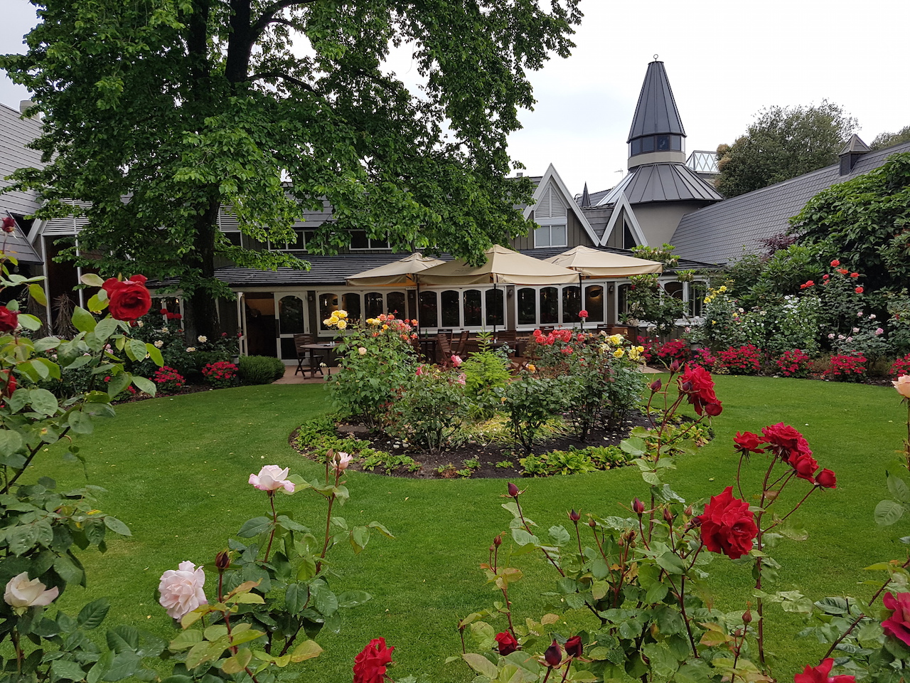 Leider hatten wir viel zu wenig Zeit um alle Annehmlichkeiten im Chateau on the Park Christchurch außgibig zu genießen. Ich habe kurz nach unserem Check In im Garten auf der Terrasse Platz genommen und einen Cafe getrunken. Hier kann man wirklich die Umgeben (den Rosengarten) genießen.  Insgesamt ein sehr entspannter Ort, wie ich finde. Hier kann man prima zur Ruhe kommen.