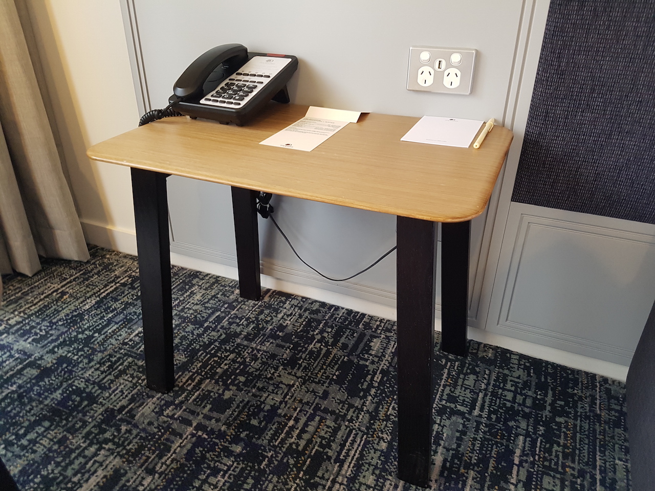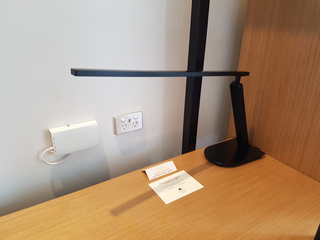 Auf jeder Seite neben dem Bett befindet sich ein Nachttisch. Mir ist zunächst gar nicht aufgefallen, dass sich in dem Wecker auch zwei USB Anschlüsse befinden.