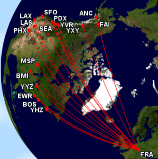 - USA: Anchorage, Baltimore, Boston, Fairbanks, Las Vegas, Los Angeles, Minneapolis, New York, Phoenix, Portland, San Francisco, Seattle