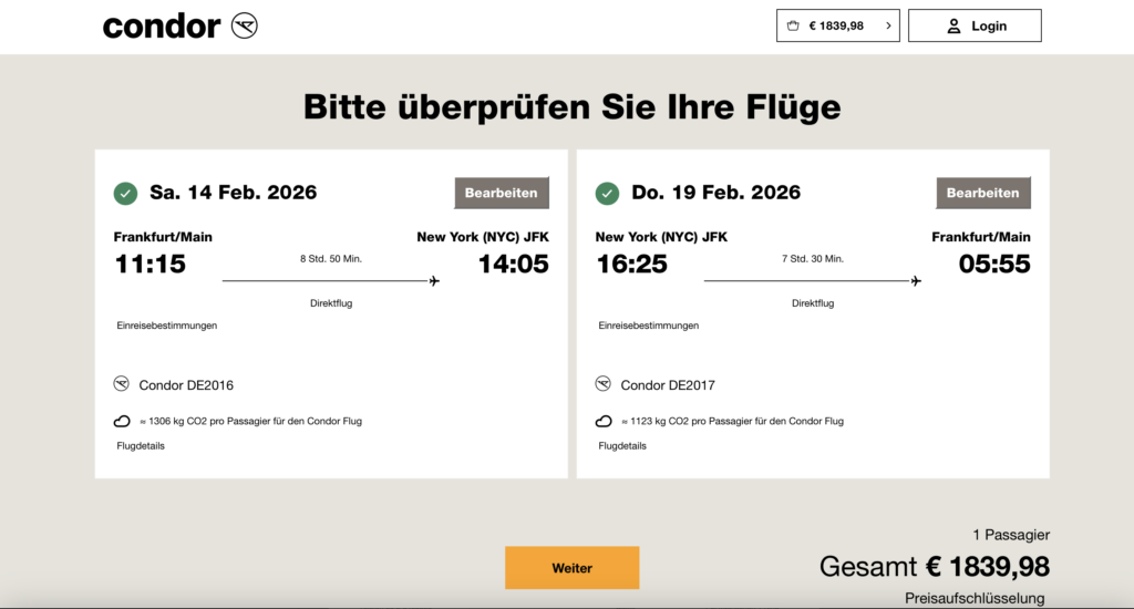 Dabei sind diese besonders günstigen Preise vor allen im Winter und Frühjahr 2026 aber man kann solche Angebote bei Condor das ganze Jahr über finden, was Condor vor allen für non-stop Flüge über den Atlantik gerne zum günstigsten Anbieter macht.