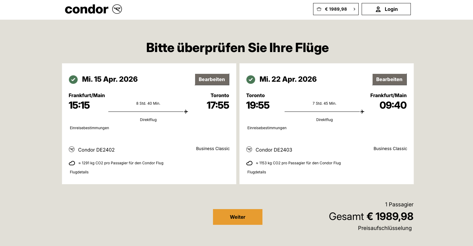 Condor Business Class non stop von Frankfurt nach Toronto ab 1.989 Euro (Hin- und Rückflug) | Frankfurtflyer Kommentar