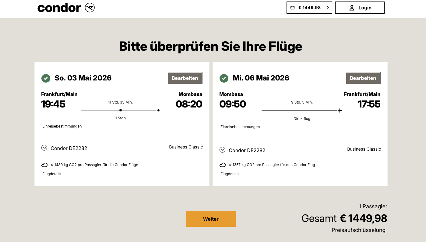 Hier könnt Ihr bei Condor direkt buchen