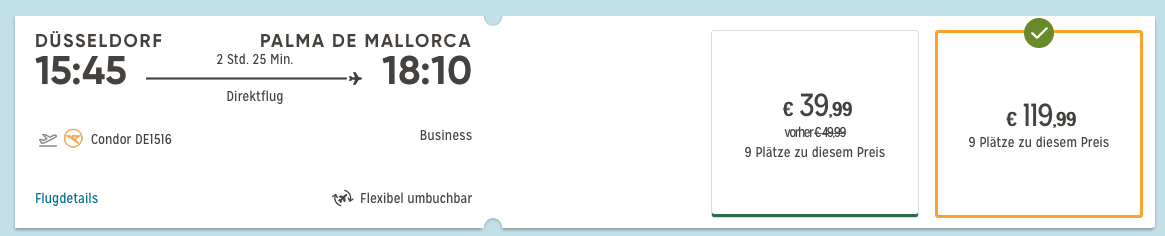 Condor Business Class nach Mallorca | Tarifdetails
