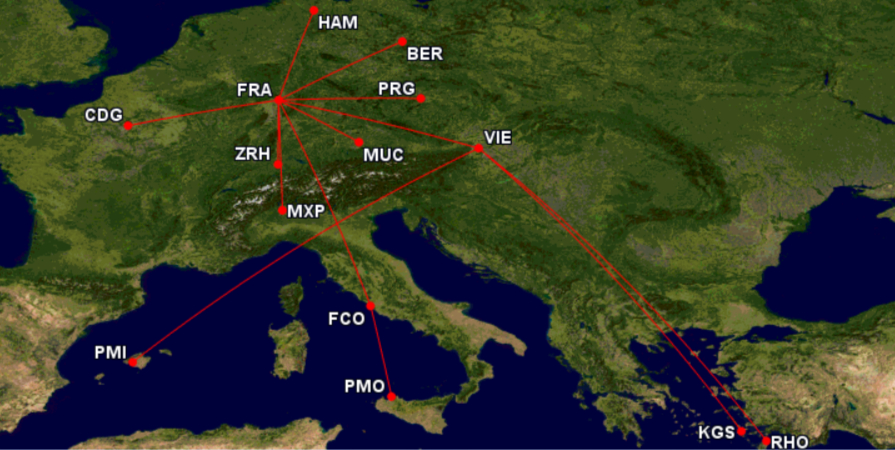 Das neue Ziel Wien (VIE) dient zukünftig nicht nur als Zubringer für die Langstrecke ab Frankfurt sondern auch als Ausgangspunkt für ausgewählte Feriendestinationen. Die Österreicher dürfen sich dabei auf drei wöchentliche Flüge nach Rhodos (RHO), jeweils zwei Flüge pro Woche nach Kos (KGS) und Palma de Mallorca (PMI) freuen.