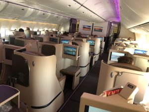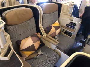 Die 22 Sitze in einer versetzten 1-2-1 Anordnung lassen sich nicht nur in ein 180° flaches Bett verstellen, sondern bieten auch jedem Passagier direkten Gangzugang. Beides ist bei Condor ein Novum und damit ein massives Upgrade für die Business Class Passagiere in diesem Flugzeug.