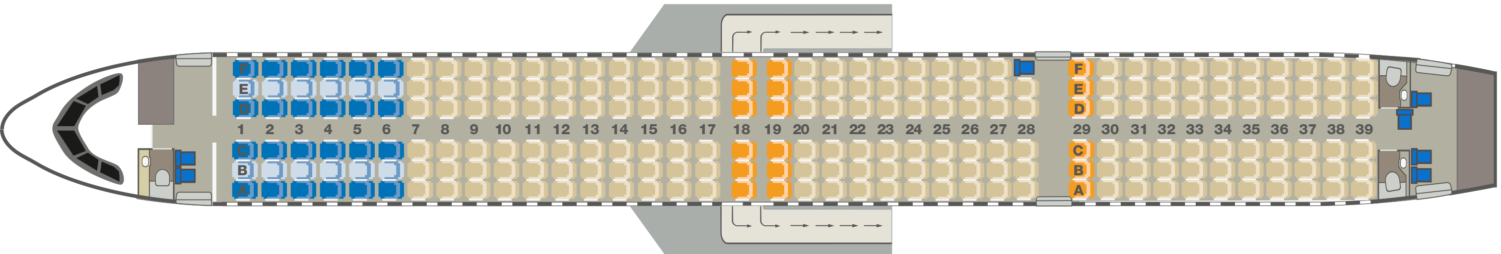 Äußerst kurzer Sitzabstand, ich schätze im Vergleich zu anderen Maschinen 71 cm, ca. 3 cm weniger als eine B737-800 der TUIfly. Sehr harte Sitze mit extrem dünner Polsterung der Sitzfläche, Rückenlehne nicht verstellbar, Armlehnen nicht hochklappbar. Bei über 4 Stunden Flugzeit eine Zumutung!