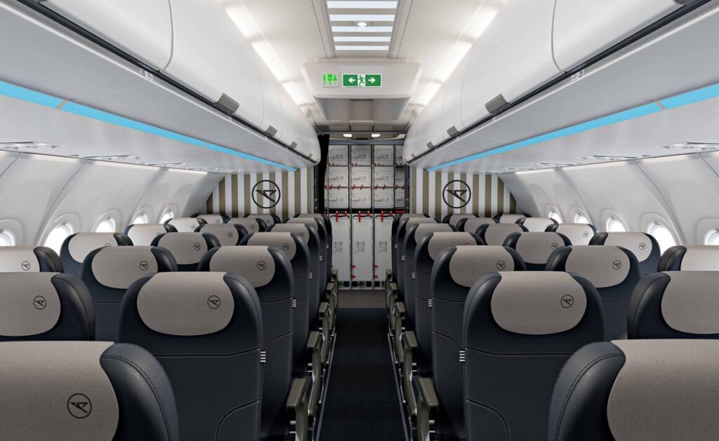 Der hintere Teil der Kabine des Airbus A320neo von Condor. Foto: Condor