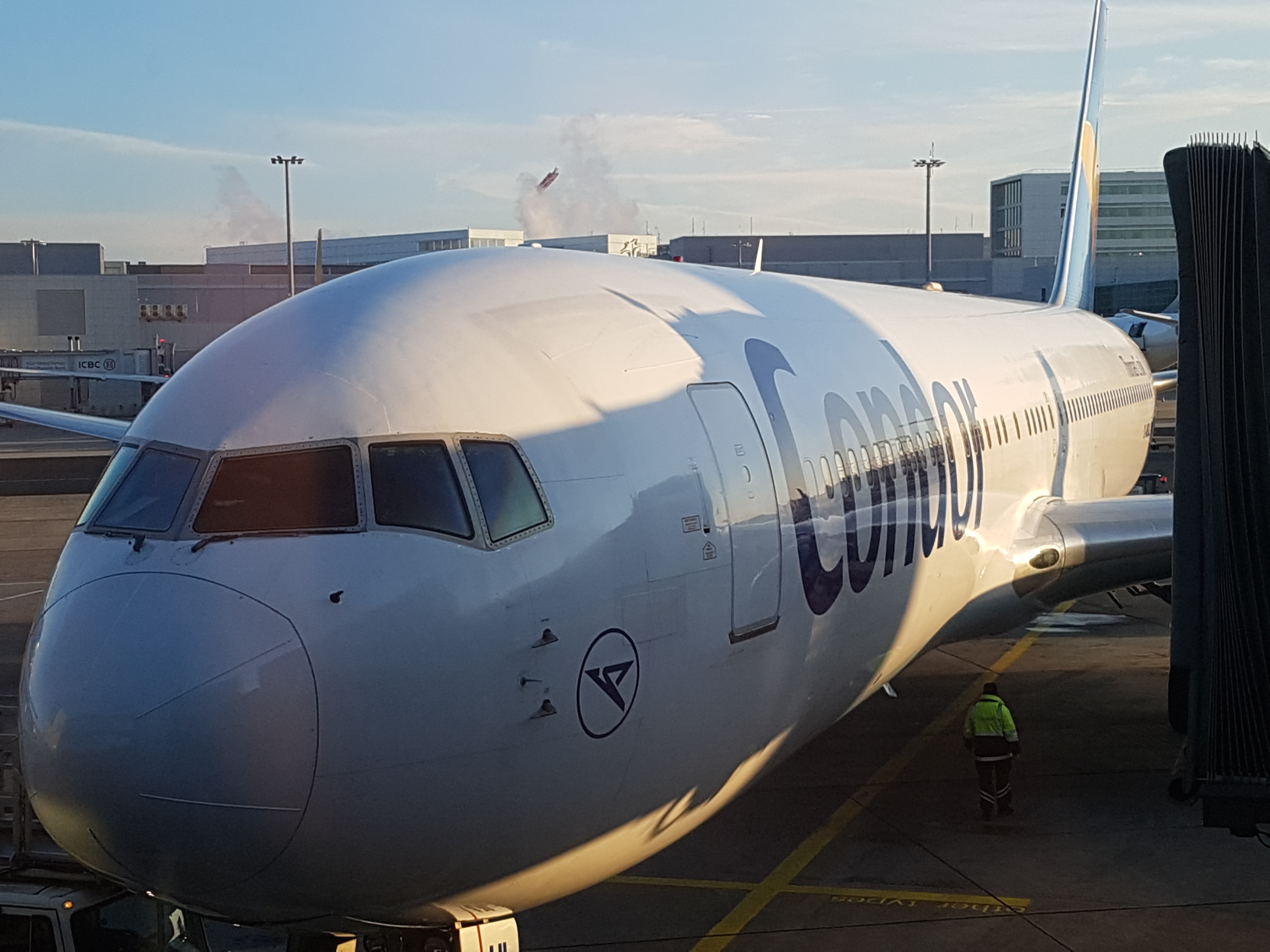 Leider werden die Condor-767 eher kurzfristig eingeplant, in einer der vorübergehend in Düsseldorf stationierten Maschinen Platz zu nehmen ist also ein Glücksspiel. Oder es erfordert einen spontanen Ticketkauf. Ein spontaner Wechsel des Fluggeräts kann allerdings – aus verschiedenen Gründen – immer vorkommen.