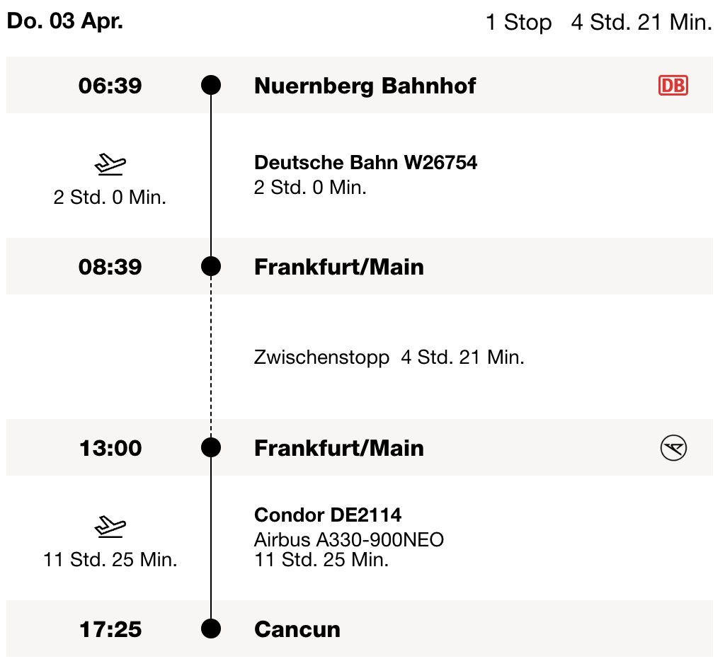 - Einheitliche Buchung: Zug- und Flugtickets können in einem einzigen Vorgang gebucht werden.