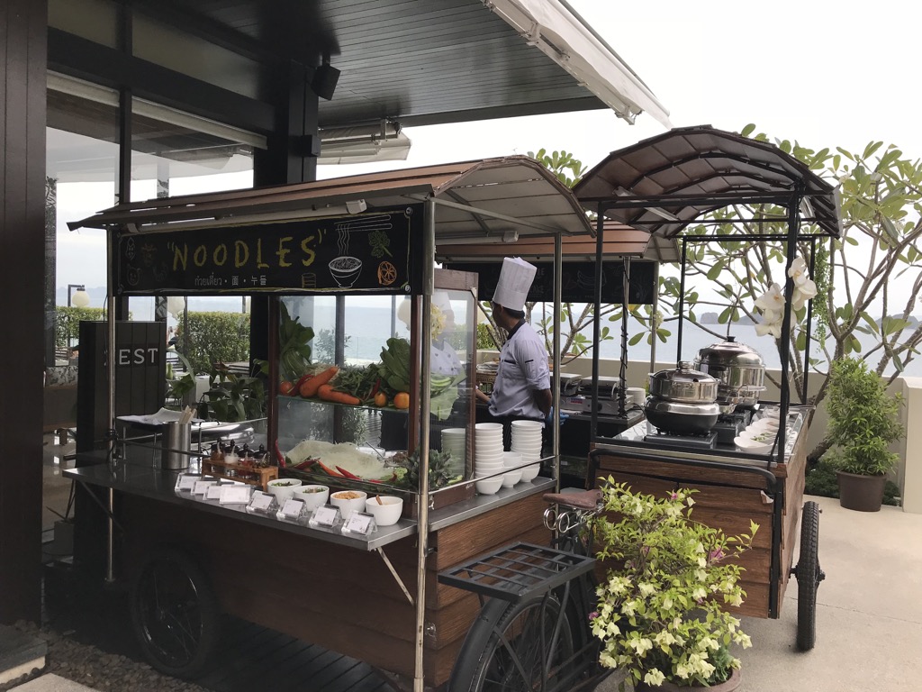 Es gibt einen 24/7 Golfcart Service – dieser fährt auch den Berg runter bis zur Schranke – von dort kann man auch zu Fuß zum 7-Eleven gehen und es gibt dort Restaurants (die wir nicht getestet haben). Wir sind mit Grab in den nächsten grösseren Ort und haben dort die Restaurants getestet (um den Thong Krut Beach herum.)