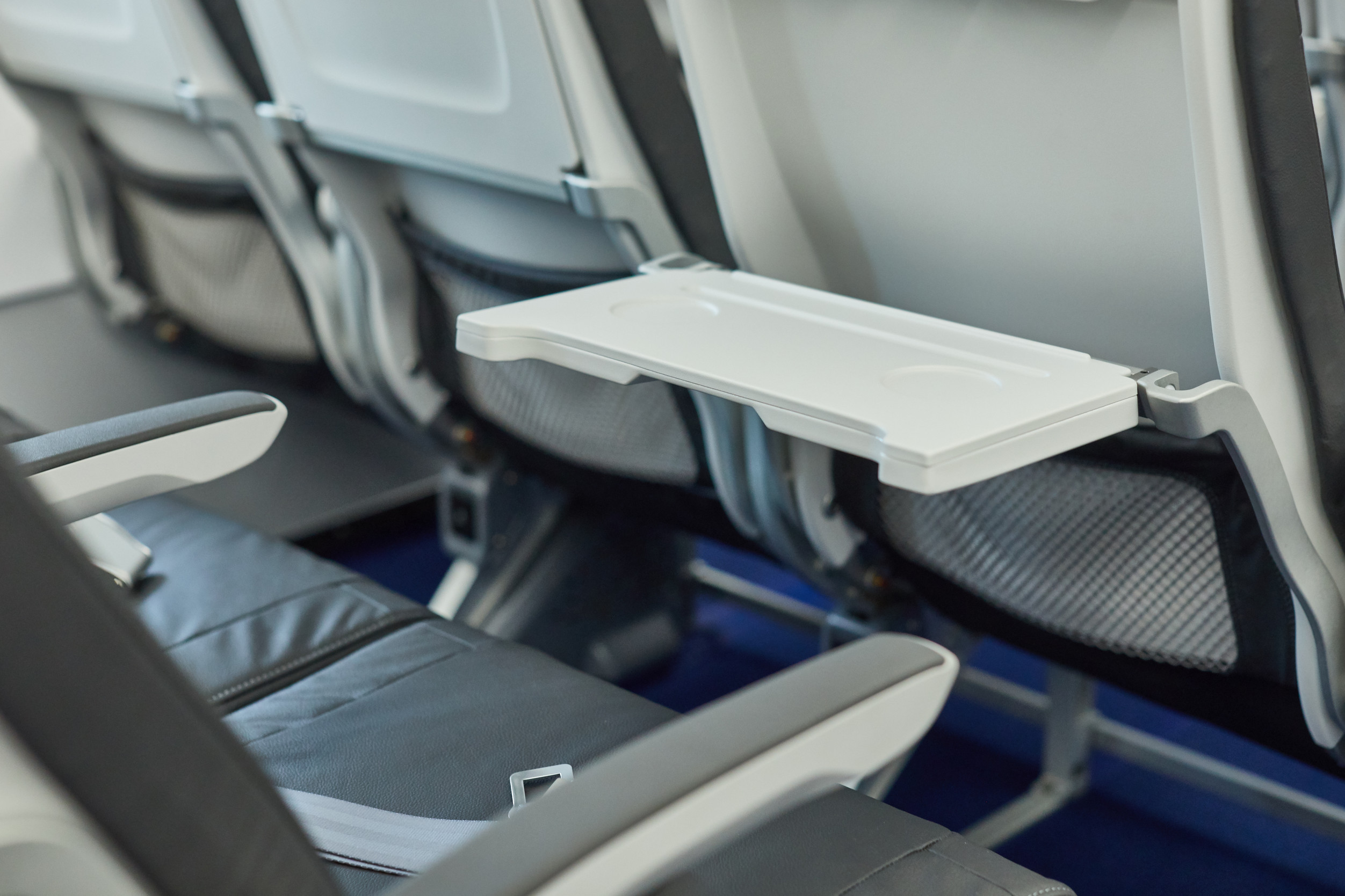 Durch das neue Design der Sitze, wie z.B. der oben quer angebrachten Literaturtasche, will man den Passagieren noch einmal etwas mehr Freiraum geben. Eine sehr positive Weiterentwicklung ist ein USB Anschluss an jedem Sitz, sowie ein Tablethalter, welcher in den Sitz integriert wurde. Zusammen mit dem zunehmenden Ausbau des Flynet Angebotes, auch auf der Kurzstrecke, kann man dies durchaus als sehr positiv verbuchen. Der Tablethalter soll in den Tisch integriert sein. Hier wurde laut der Beschreibung von Lufthansa ein Schlitz in den Tisch eingebracht. Auf den Bildern von Lufthansa kann ich dies leider noch nicht so recht erkennen, aber man wird sicher in der Praxis Erfahrungen mit der neuen Vorrichtung sammeln können.
