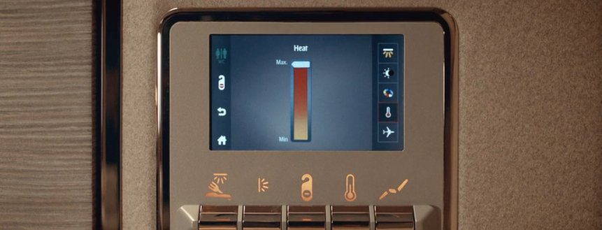 Neben einem „Do not disturb“ Knopf wird der Passagier nun auch die Möglichkeit haben die Video Chat Funktion zu nutzen, um mit der Crew in Kontakt zu treten. Es wird sich sogar die Temperatur in der Suite individuell einstellen lassen.
