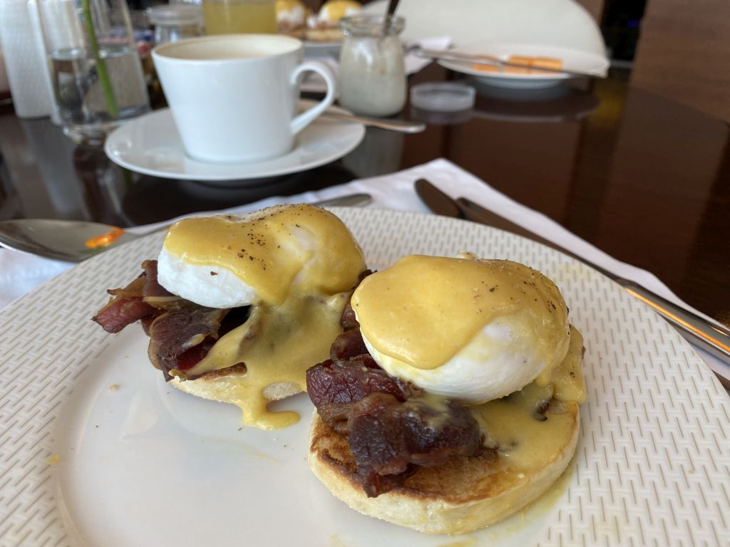 Eggs Benedict während des Frühstücks im Club InterContinental in Dubai. Foto: Sebastian