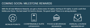 Doch eines der spannendsten neuen Features ist der Milestone-Bonus, mit dem Ihr Suite-Upgrades, Lounge-Zugang, Punkte und Food & Beverage-Credits verdienen könnt. Dieser Vorteil wird abhängig von der Anzahl der Übernachtungen gewährt. Je Meilenstein stehen bestimmte Vorteile zur Auswahl, aus denen Ihr einen wählen könnt. Bei 40 und 70 Nächten dürft Ihr sogar zwei Vorteile auswählen.