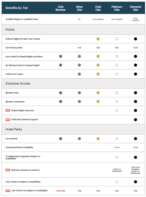 • Diamond Elite: 70 Nächte oder 120.000 Punkte (bisher 75 beim Spire Elite)