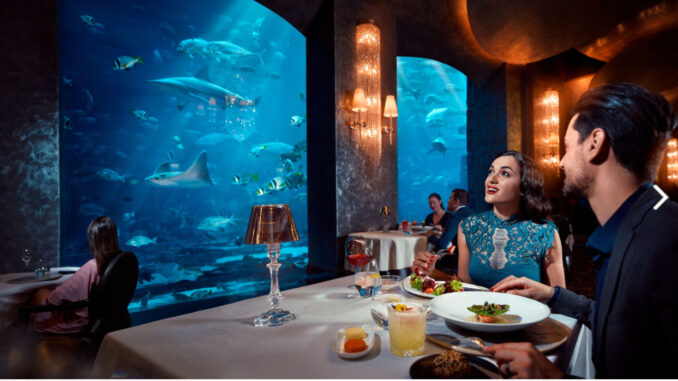 Das Ossiano Restaurant im Atlantis The Palm ist zweifellos eine der beeindruckendsten kulinarischen Adressen in Dubai. Dieses außergewöhnliche Restaurant liegt unter Wasser und bietet Gästen ein Dinner-Erlebnis umgeben von einem riesigen Aquarium mit exotischen Meerestieren. Chefkoch Grégoire Berger kreiert avantgardistische Menüs, die sowohl geschmacklich als auch optisch beeindrucken und das Essen zu einer Kunstform machen.