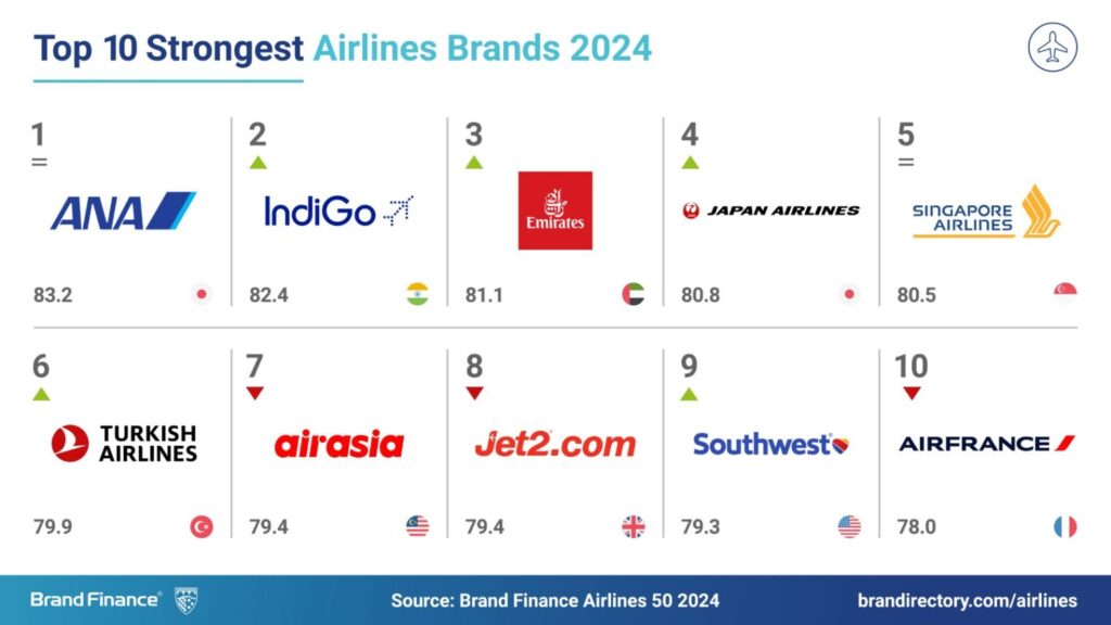 Das sind die wertvollsten, stärksten und nachhaltigsten Airline-Marken 2024 | Die stärksten Fluggesellschaft-Marken im Jahr 2024