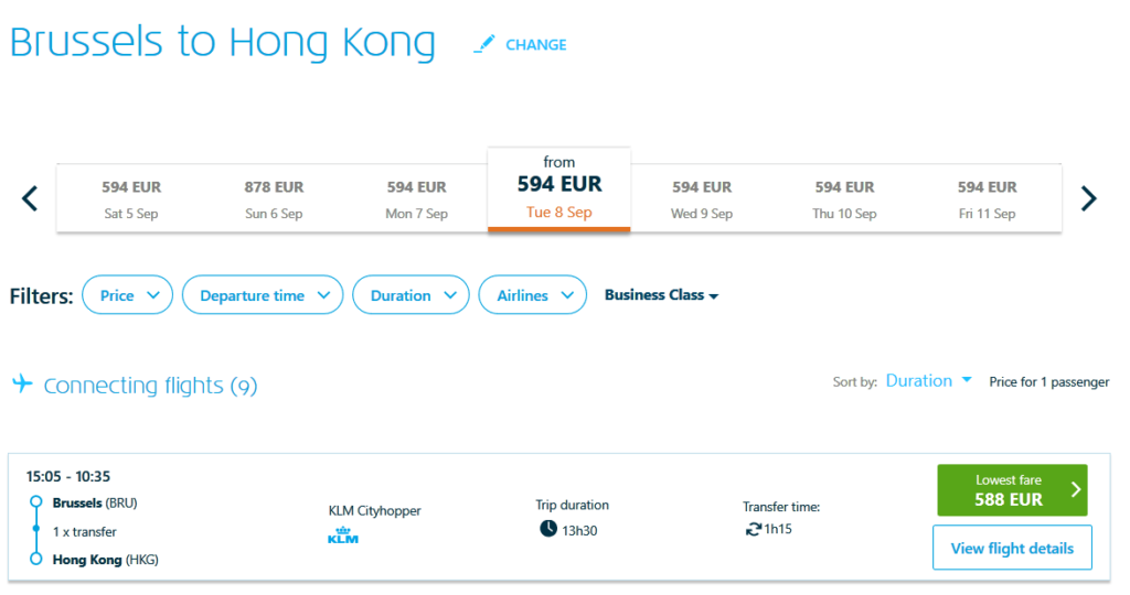 Deal: KLM Business von Brüssel nach Hong Kong 1.240 EUR | Frankfurtflyer Kommentar