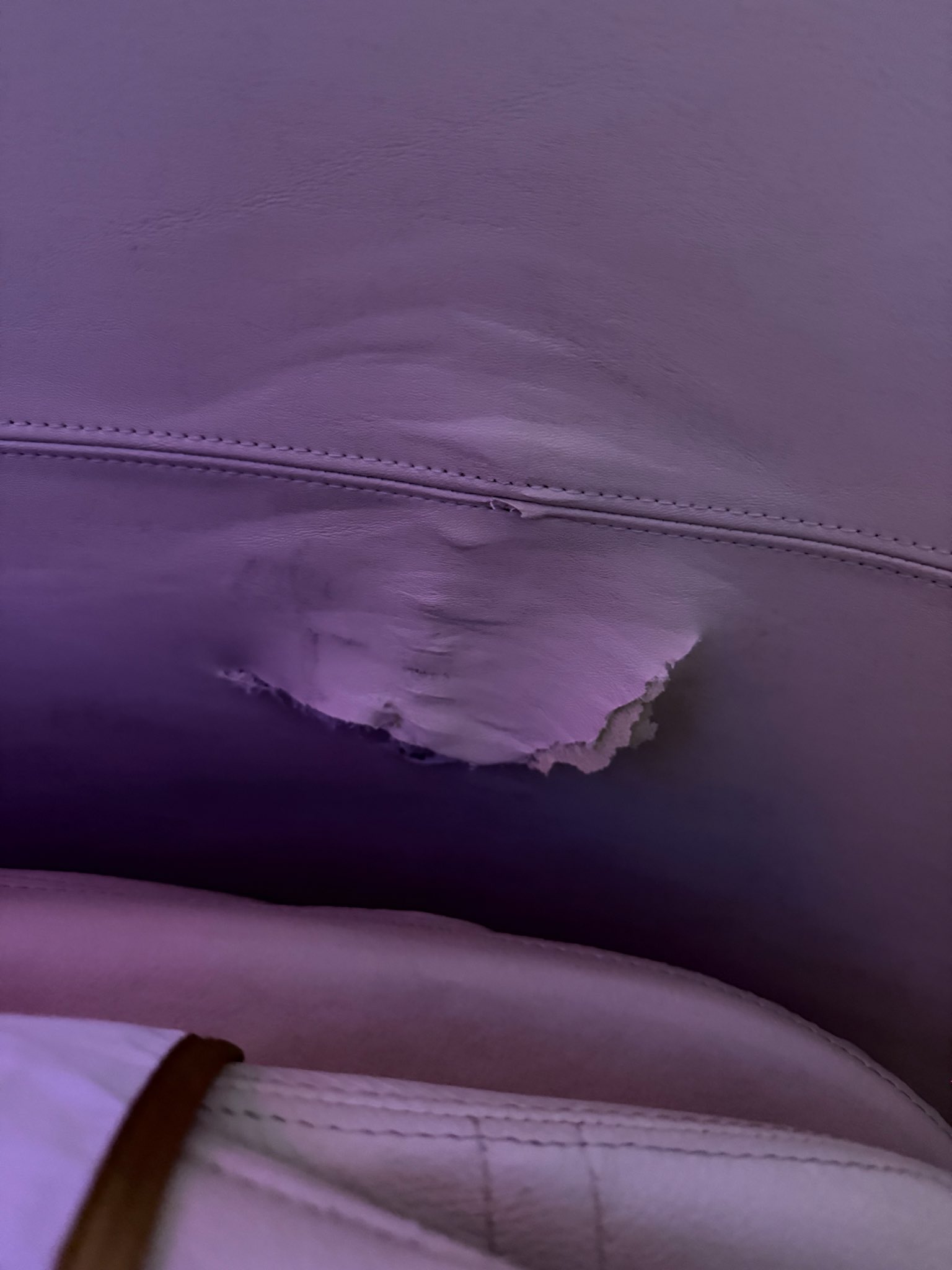 Gut, LH hat uns für 2x kaputtes ICE, defektes Licht und Crew Call Button ohne Ausweichmöglichkeit im A380 auch nur lächerliche 100,-€ pro Person Kompensation geboten. Die Alternative wäre ein Downgrade in C gewesen. Im Unterscheid zu Air India waren die Risse im Leder aber mit Tape „repariert“.