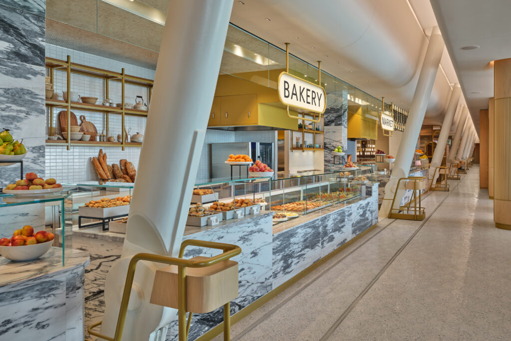 Ein wichtiger Bestandteil der Lounge wird natürlich das Restaurant und die Bar sein, wo man ein deutlich hochwertigeres Angebot bieten will, als in den normalen Lounges. Interessanterweise wird man kein a la carte Essen anbieten, aber an mehreren Stationen in der Lounge, wird man sich wie an einem modernen Hotel Buffet verschiedene Speisen nehmen können.