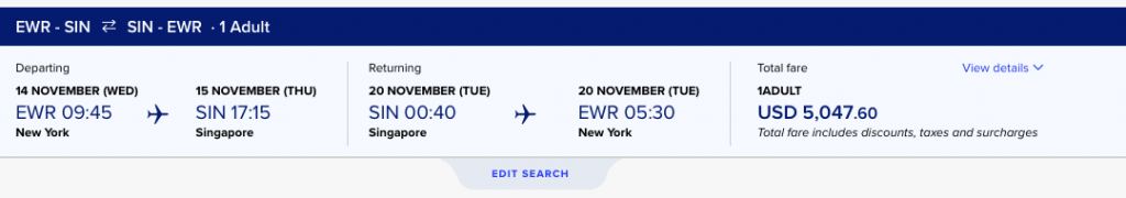 Die einfachste Option den längsten Flug der Welt günstig zu buchen ist natürlich einfach mit Cash ein normales Ticket zu kaufen. Dabei bietet Singapore Airlines auf diesem neuen Flug noch einige verhältnismäßig gute Angebote an.