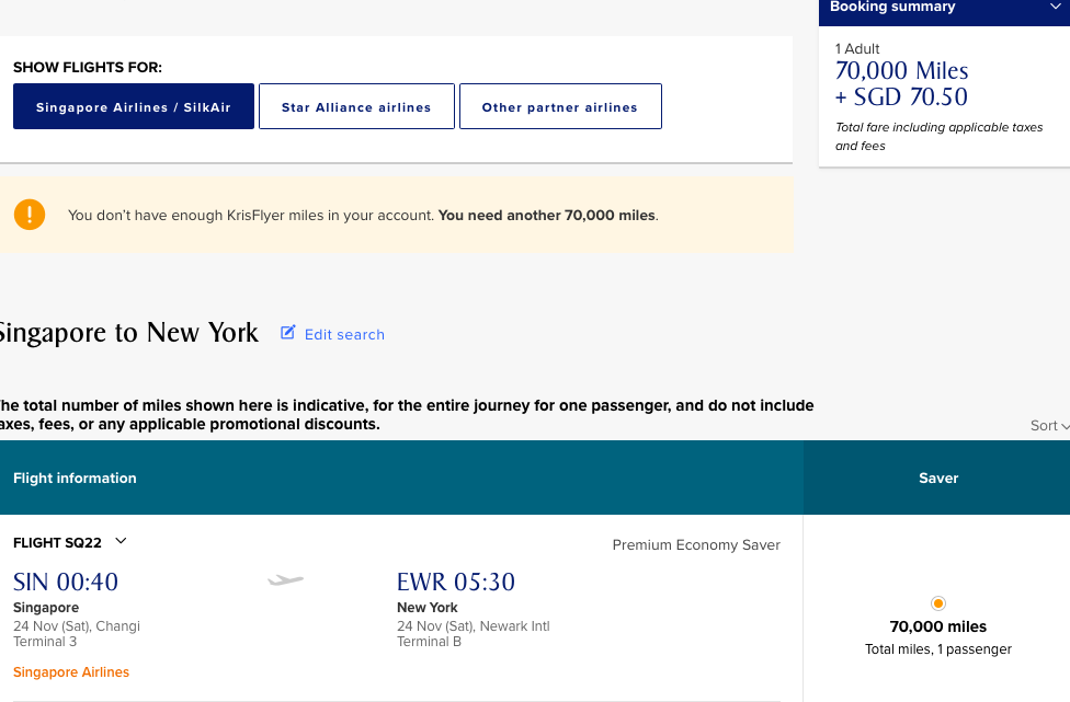 Auch mit Meilen kann man den längsten Flug der Welt verhältnismäßig gut buchen. Dabei muss man allerdings beachten, dass Singapore Airlines Prämienplätze nur für wenige Partnerairlines zur Verfügung stellt. Die gute Nachricht ist hier aber, dass man sowohl über Singapore Airlines KrisFlyer, also auch über Miles&More gleichermaßen gut buchen kann.