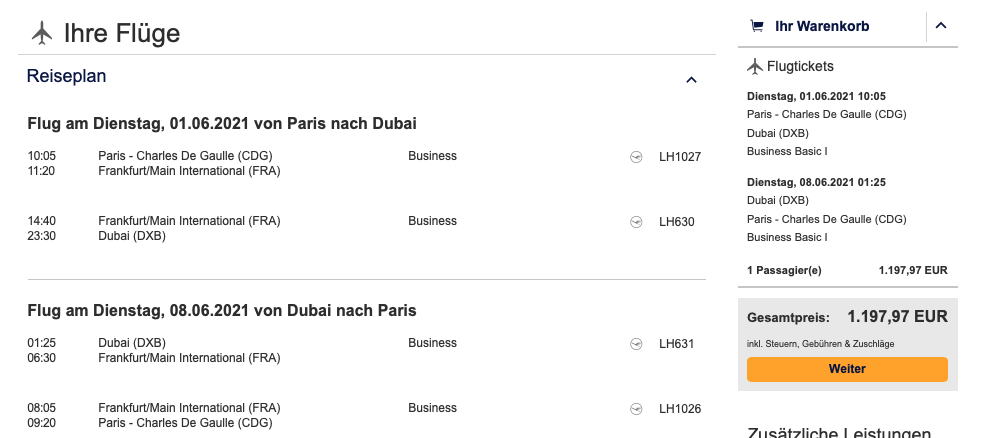 Wen es aktuell z.B. nach Dubai zieht, der kann ab Frankreich Lufthansa Premium Economy Class Flüge ab 573 Euro für den Hin- und Rückflug buchen. Hierbei sammelt man über 21.000 Statusmeilen, was bei dem Preis wirklich enorm ist. Wer übrigens nicht in Paris, Toulouse, Nizza und Co. abfliegen will, der kann auch in Straßburg starten, was für den ein oder anderen einfacher zu erreichen ist.