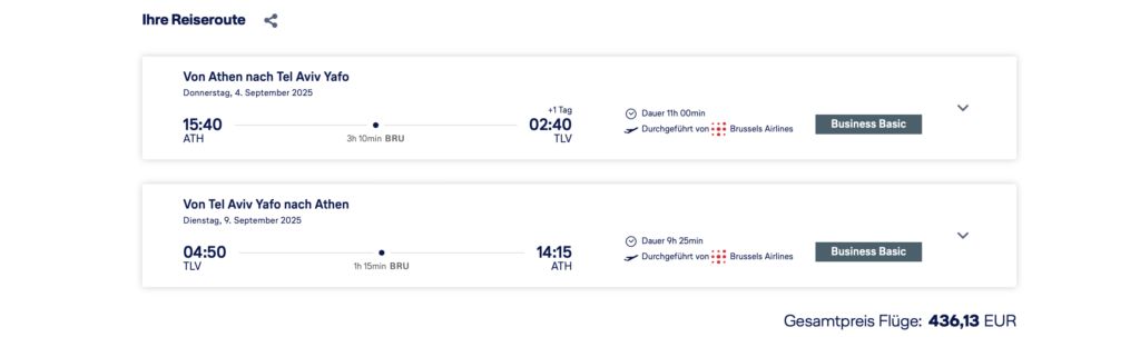 Dies ist ein spektakulär günstiger Wert, allerdings haben solche besonders attraktiven Tickets natürlich auch immer gewisse Nachteile, denn dieser Status Run startet nicht einfach in Deutschland, sondern man müsste von Athen über München, Zürich, Frankfurt, Brüssel oder Wien nach Tel Aviv fliegen, was aufgrund der aktuellen Lage vielleicht auch nicht für jeden das bevorzugte Reiseziel ist, aber dennoch finde ich die Möglichkeit durchaus spannend, egal ob man diese Tickets wirklich abfliegt oder nur ein Gedankenspiel vornimmt.