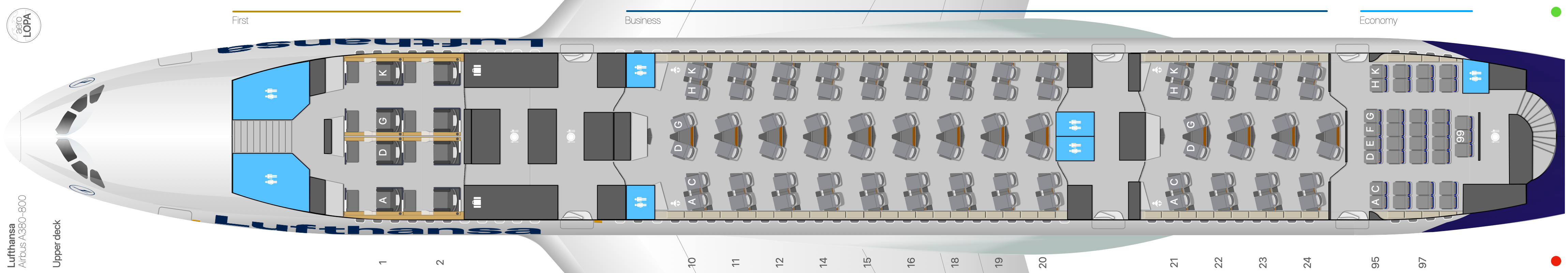 Entweder muss Lufthansa die Anzahl der Business Class Sitze um etwa 6-8% reduzieren oder man entfernt die Economy Class wieder aus dem Oberdeck des Airbus A380 bei Lufthansa.