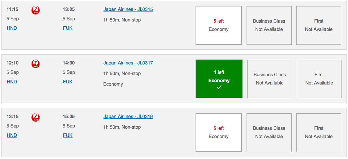 Man kann den JAL Airbus A350-900 sehr einfach mit Meilen buchen und findet hier eine sehr gute Verfügbarkeit. Allerdings scheint man Partnern nur Prämienflüge in der Economy Class verfügbar zu machen, was auf den sehr kurzen Flügen allerdings kein Problem sein sollte.