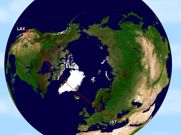 - TK 179 Istanbul 8:35AM nach Los Angeles 12:20PM