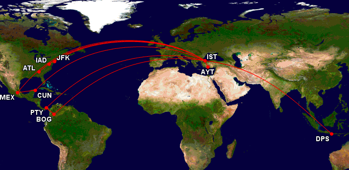 Neben Antalya und Bali wird der Turkish Airlines 787 Dreamliner in den kommenden sechs Monaten auch noch auf folgenden Strecken eingesetzt werden: