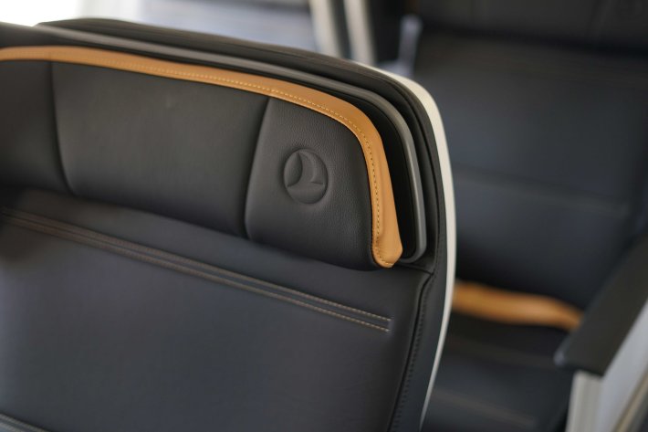 Turkish Airlines bietet schon seit Jahren auch auf den Kurzstreckenflugzeugen eine separate Business Class Kabine mit breiten, bequemen Sesseln an. Im Airbus A321neo hat man noch einmal einen neunen Sitz vorgestellt, welcher mit seinen dünneren Rückenlehnen und dem modernen Design den Passagieren mehr Freiraum bieten soll.