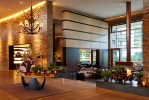 Der luxuriöse Spa-Bereich umfasst beheizte Innen- und Außenpools mit Bergblick, verschiedene Saunen und Dampfbäder sowie ein umfangreiches Angebot an Massagen und Schönheitsbehandlungen.